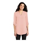 For a stylish and comfortable garment that is great for both professional and recreational settings, look no further than this Port Authority LW701 women's 3/4 sleeve tunic blouse. Made with 4.1 oz. 100% polyester crepe fabric, this tunic blouse is both comfortable and flattering. Better yet, its longer tunic-length design can be worn with leggings and is great for layering, making it an extremely versatile option.