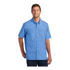Port Authority W961 Unisex Customizable Light Blue Short Sleeve Moisture Wicking UV Daybreak Shirt - UPF Rating of 30 - Small