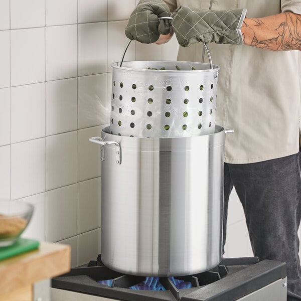 Choice 40 Qt. Standard Weight Aluminum Stock Pot with Steamer Basket and Cover