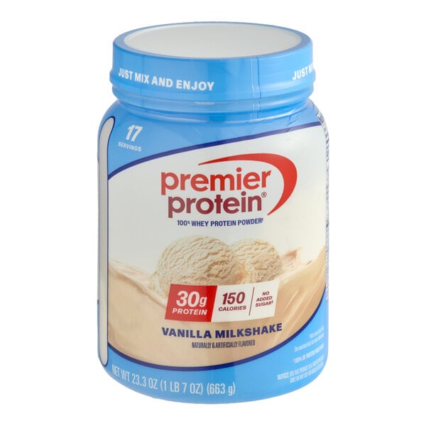 Help customers power through their busy days with this Premier Protein vanilla milkshake protein powder! It features a creamy, classic vanilla flavor perfect for satisfying sweet cravings. Containing 30 grams of protein per serving, this powder is great for after a workout to help you meet your protein needs and replenish your muscles after they have been working hard. Its protein is derived from 100% whey to aid in muscle protein synthesis. It contains only 150 calories per 39 gram serving with only 1 gram of sugar.