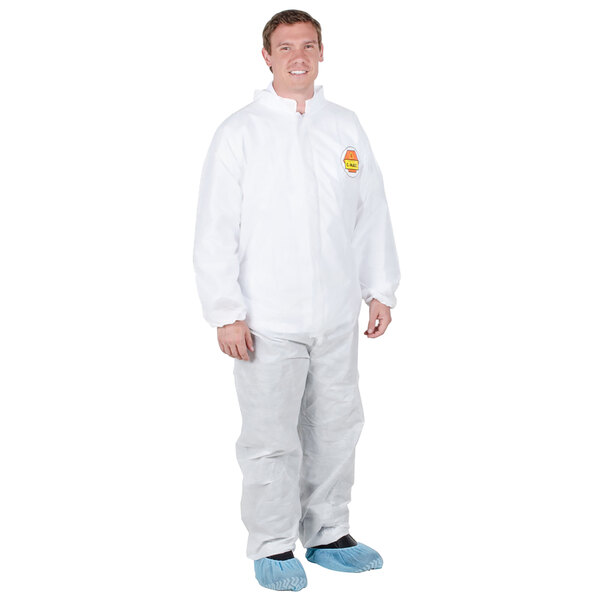 Made of one layer of meltblown polypropylene sandwiched between two layers of spun-bonded polypropylene, these coveralls offer ample protection from non-hazardous liquids and particulates. The abrasion-resistant material is built for longevity and even boasts durable, serged seams to prevent fraying while still allowing for some flexibility. Use them wherever a high level of protection is desired, such as with asbestos abatement, painting, or mold remediation. Safe for food contact, these coveralls are also perfect for large food processing facilities.