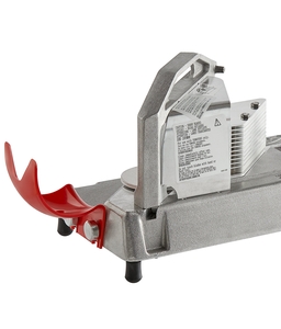 The contoured pusher handle is ergonomically designed to minimize hand fatigue during long prep sessions. Duralon bearings located in the pusher and carrier assembly are permanently-lubricated, so the pushing mechanism slides with little effort. A tomato catcher reduces messes and also increases sanitation.