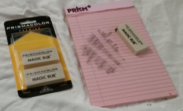 magic rub erasers are a bit different than the usual pink pencil eraser. They wear down more quickly, but are also very gentle on the paper. That makes these great for use on things like art, or, in my case, scrap booking.