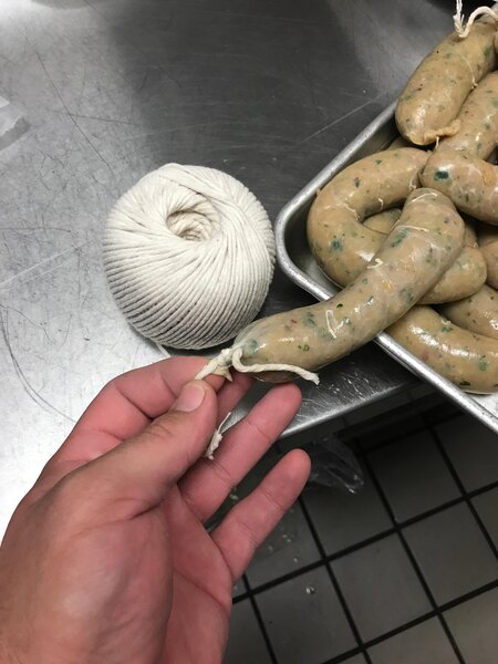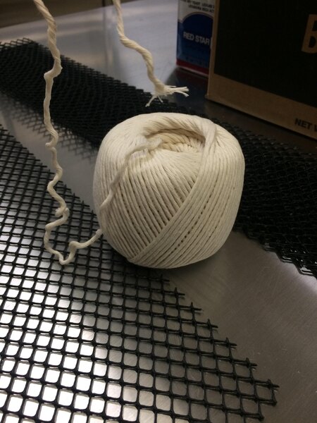 Good quality butcher's twine. I've used it for many things. For curing and smoking Canadian bacon, tying up prime ribs, used to hang things in the smoker, tying up herb/spice bundles, etc. Works well and is cheap!