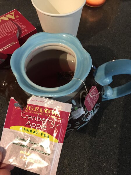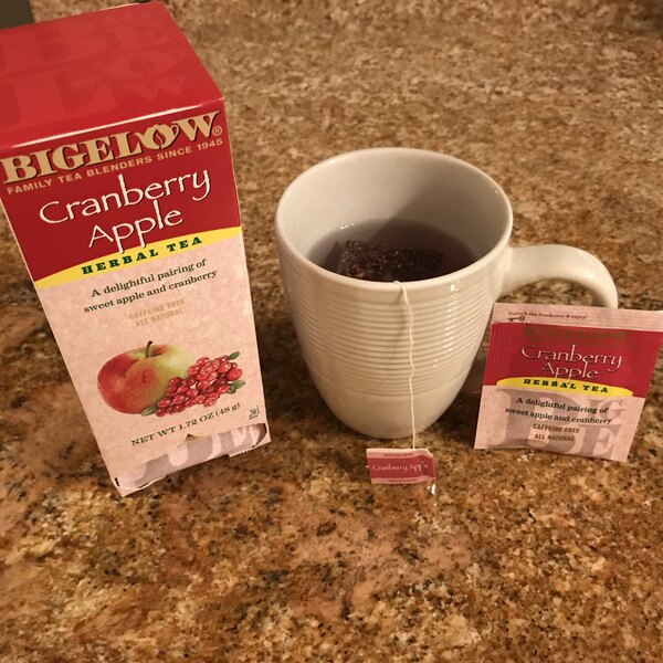 This Bigelow cranberry apple herb tea tastes great and is a great quality! It is exactly the same brand you would find in grocery stores but there is a better selection on here.
