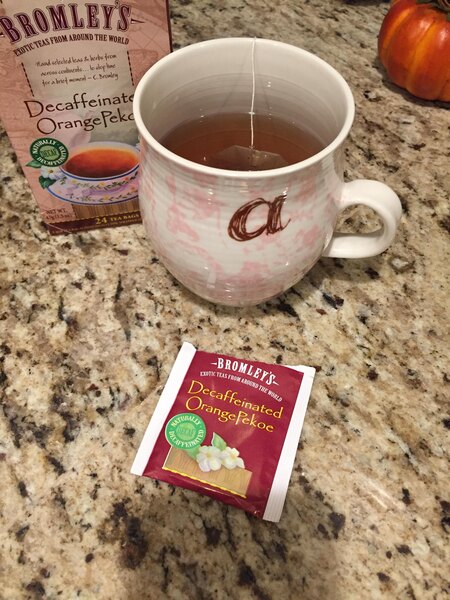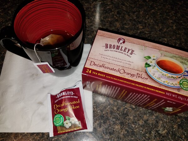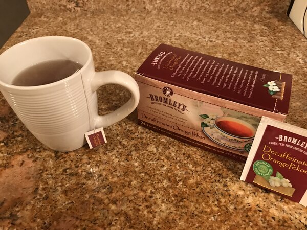 The Bromley exotic orange Pekoe decaffeinated tea is wonderful and delicious. I love the great orange citrus flavor and the tea is great for night time drinking.