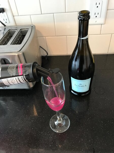 We love adding this syrup to our fresh lemonade. It adds a brilliant color, good flavor, and comes in a very easy to dispense container.