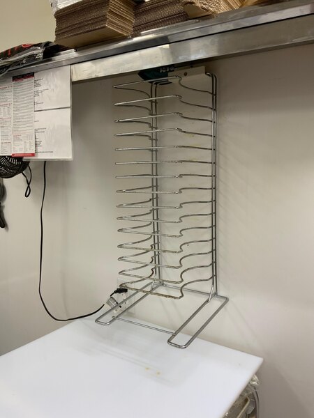Customers appreciate this pizza pan rack for its durability and ability to efficiently organize and hold pizza pans and screens, making it a valuable asset in both commercial kitchens and catering. Opinions on its capacity and strength vary, with some finding it perfect for their needs and others noting challenges with larger pizza sizes. Overall, it's considered a helpful tool for pizza preparation and storage.