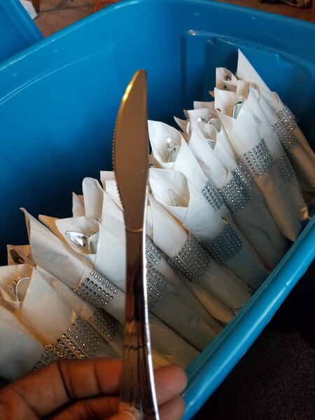 A lot of the knives are scratched and have dark spots on them. If you are planning to use for a wedding, I don't recommend ordering them. Hopefully with the quantify ordered, I will be able to pick out enough to have what I need for the wedding.