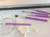 I love these brushes! They are a very pretty purple, but also see through, if that makes sense. There are 5 different brush tips, which allows for the perfect brush to be used for certain things. These brushes work well for "gluing" fondant together, to fine details with painting fondant and gum paste. They wash easy, and I set them to air dry, but be careful with how you place the brush so that while it's drying, the brush bristles are not bent, otherwise, you'll end up with a useless brush.