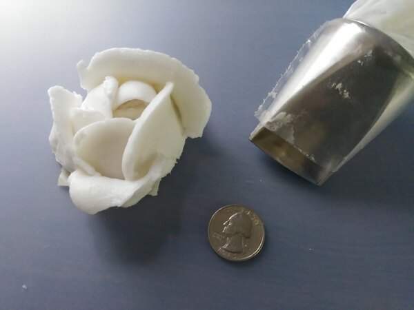 This rose tip is gigantic. Very good quality of metal. Can't wait to use it for very big size of roses on the cake or maybe on cupcakes.