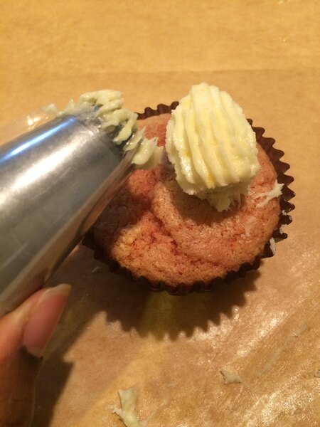 I love how big this tip is. It’s like a giant sea shell and I had an underwater party with cupcakes and it was the best time to do a large dollop of icing on top.