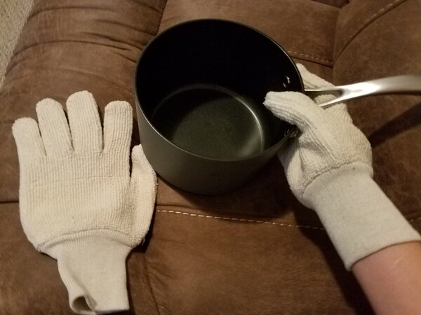 The gloves allowed me to quickly pull a cake out of the oven and place it on the counter without any discomfort. The second time I used them, I had to hold a hot cake pan a little longer and the heat went through.