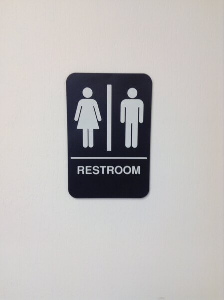 Perfect unisex bathroom sign. This sign eliminates all confusion around identifying which bathroom someone should use. I like that it has braille on it too.