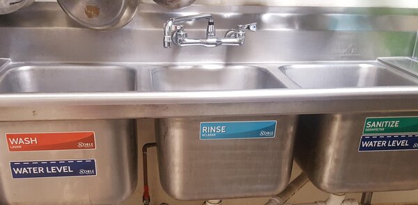 These stickers were applied to our compartment sink, and they make my health department inspector happy. They have stood up to water splashes very well, and they're not peeling off or showing signs of wear. I'm happy with them.