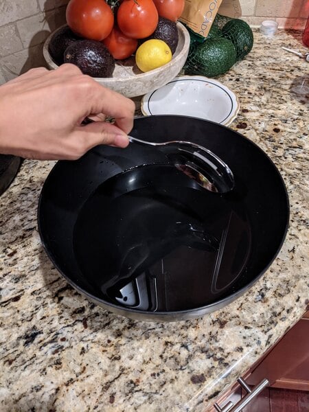 I like how long each of the slots on this spoon are. It makes quick work when trying to make sure we don't serve too much liquid with meats or other dishes.