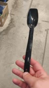 This little black spoon is strong, easy to clean, and inexpensive. We use it to scoop toppings for our frozen custard and they are wonderful.