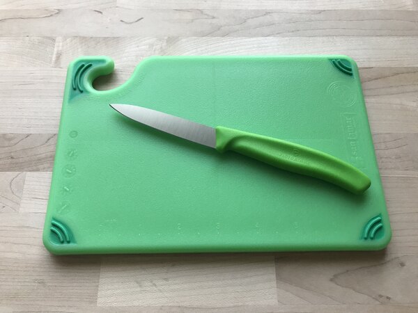 I just love the bright green color to remind me to pick up my green cutting mat and only use this for vegan dishes when I work with my colleagues who are concerned about cross-contamination when I prepare vegan options for snack trays.