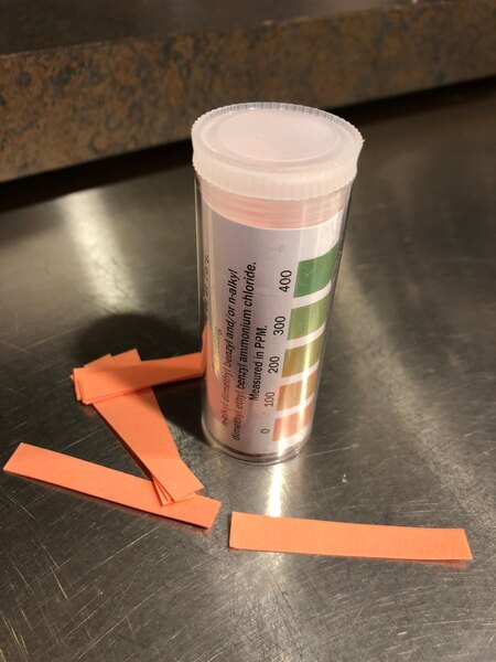 I always make sure to have both bleach and quat test strips. You never know when one sanitizer will run out and you have to substitute something else.