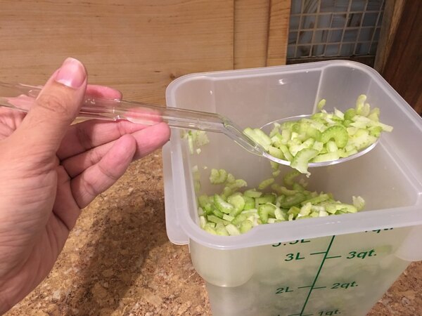 In comparison to the Carlisle spoon, this spoon allows for the perfect portion of salad dressing, not too much, not too little, but just right.