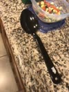 Love this black plastic spoon. Works great while cooking meals on the stove top and can use it at the kitchen table to dish out rice and salads.