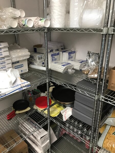 All restaurants can never have enough storage. Whether it is shelving like this, or standard wall mounted shelves you can never seem to have enough.