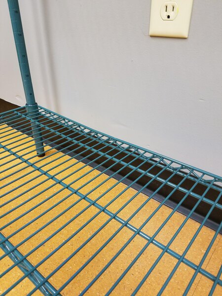 This shelf gives a ton of usable space thanks to the 24" width. It's also tall enough to give room for another shelf or two, if you wanted to add them. I liked the adjustable feet, which made it possible to quickly level it on a slightly uneven floor. The unit arrived with some minor shipping damage--scratches through the epoxy, a few dents, and a couple busted welds. None of these should affect performance, and webstaurant store credited me for some of the damage, but be aware that some shipping damage is given the light packaging.