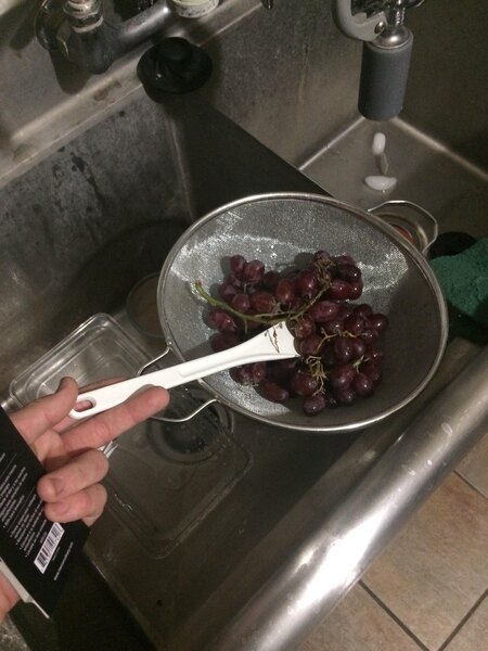 I really like and appreciate this unusual utensil. So full marks for the design, but I take off a star because the only option white color stains very quickly (one batch of chili will do it) which is not so aesthetically appealing. This would be perfect if it were offered in darker color options for those of us who like our utensils in crocks on the counter.