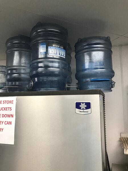 We love these ice bins. They are very light weight, and easy to use. They come with a hook to hang them upside down to drain the water out of them.