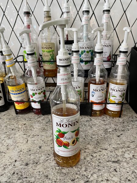 A really nice quality coffee house syrup from Monin that is awesome for flavoring our coffee at home. The sugar free peach is luscious and sweet and no sugar. It is amazing.