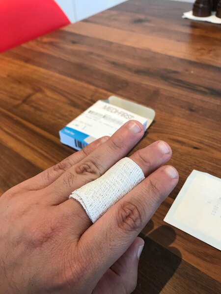 wee use this size of gauze all the time because cooks burn them selves all the time, we use medical tape to cover any wounds from the cooking area