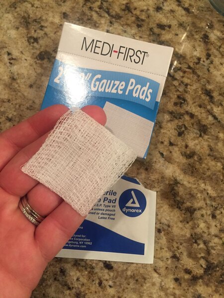 These gauze pads can be used for a lot of first aid situations. They'e especially good at covering up minor wounds if you don't have a band aid.