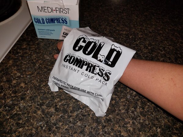 I love the convenience of these cold compresses and ice packs. All you do is squeeze to activate and place it on your wound her a towel.