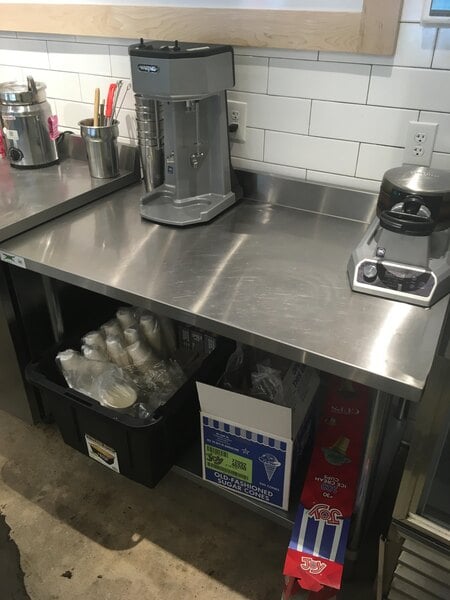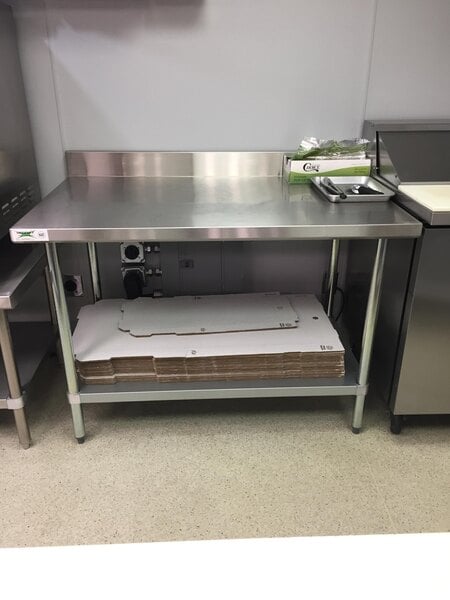 Good quality table. Super strong. The 30inch by 60inch work top is the perfect size for any prep job, and the weight bearing capiblities make that possible. The 4 inch back splash means you don't have to worry about stuff rolling off or dripping off the back.
