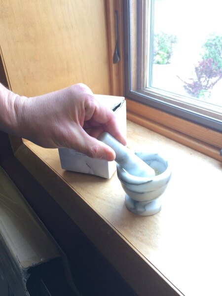 First off, it's a beautiful looking mortar and pestle. I keep it visible in the kitchen even though I don't use it that often. There are grooves in the mortar and the bottom of the pestle is rough as well to aid in grinding. The full volume of the mortar, I would estimate to be less than or about 1 cup but the actual usable volume would be closer to 1/3 cup of actual spices.