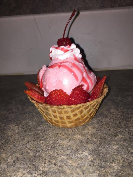 The Joy ice cream waffle bowl is a great way to serve ice cream sundaes and other desserts because its fun and you can eat the bowl too. Very tasty and fresh.