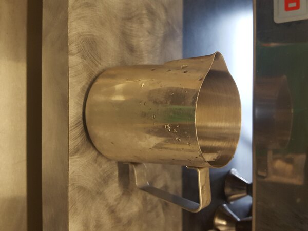 An essential to any barista station. The frothing pitcher is well made and has a wide top to allow as much swirling of the milk to create the best milk foam possible. The stainless steel is extremely easy to clean and a quick turn around in terms of cleaning. Well made.