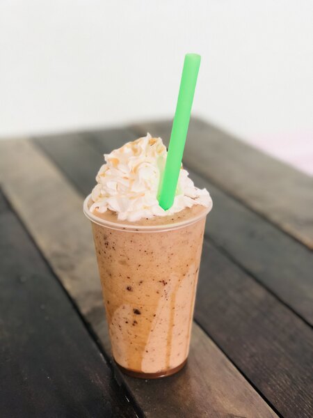 This caramel syrup is perfect to blend in our house made frappes. It adds an extra caramel kick to our Twix or caramel frappe drinks.