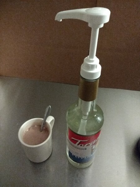 The syrup works tastes just fine, but we found it much easier, tastier, and economical to make our own peppermint simple syrup with peppermint extract.