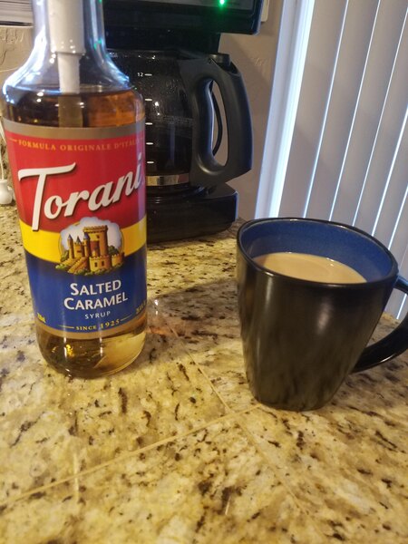 This Torani syrup is amazing. It adds the perfect touch of sweetness and salted caramel flavor to your coffee, and the bottles add the perfect touch of style to my coffee bar.