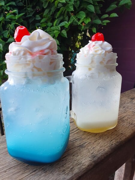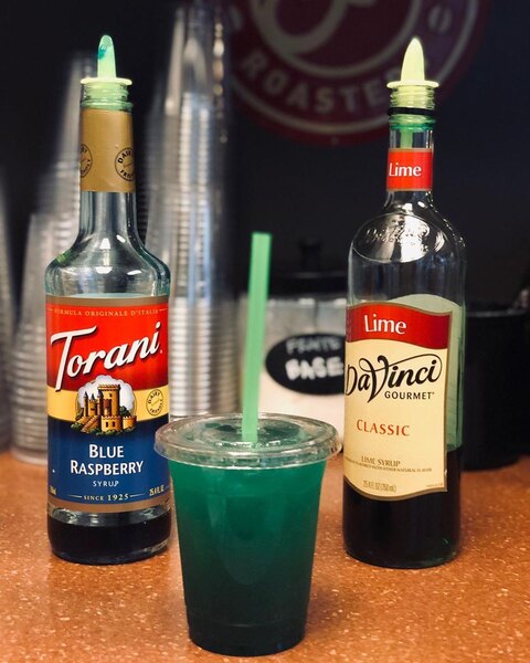 The blue raspberry Torriani flavor goes well with green apple and passion fruit. We put these in our Red Bull Italian sodas as well as our lotus drinks.
