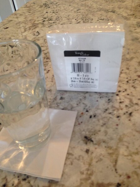 Much like the black napkins, I felt that the color was off by a shade. They were more "off-white" than white. However, they served nicely in my presentation.
