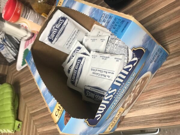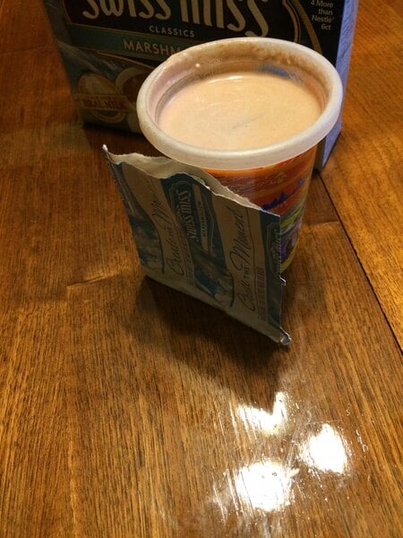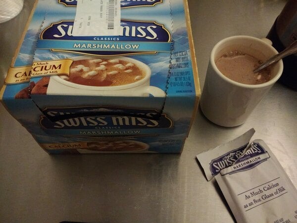Who doesn't love marshmallows in their hot cocoa ? With a name like Swiss miss, you know you're getting quality. Not to mention a great way to warm up in the morning if you're not a caffeine person.