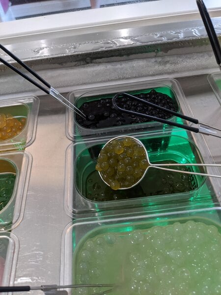 The best popping boba there is! Kids and adults rave about them. We add them to our refreshers, milk teas, sometimes people just order a scoop of them alone just to snack on while waiting for theirs drinks to be made. Will always have them in stock in our shop!!