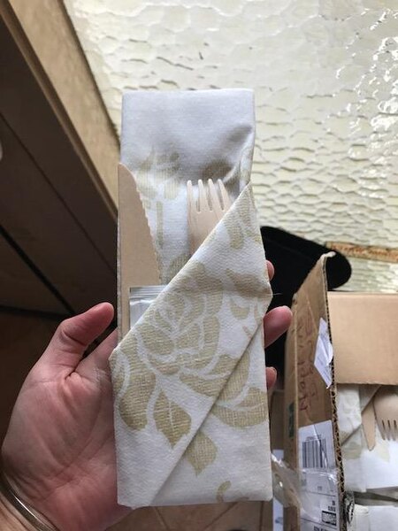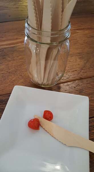 Love the sturdiness and well built design of this disposable wooden knife. Great for serving with our to go dinner and really a great item for the Earth.