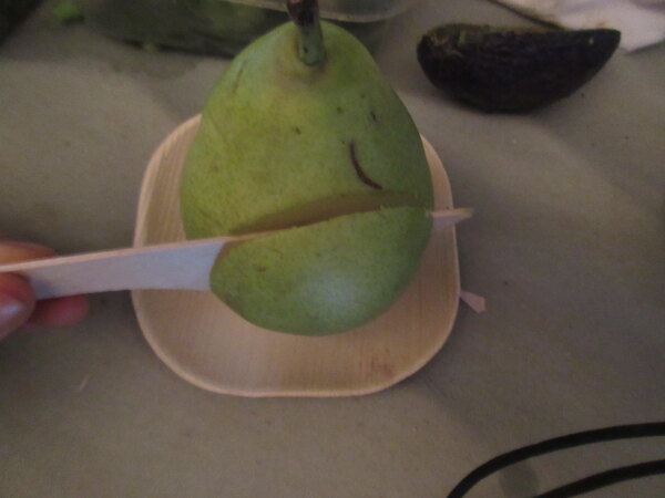 These knives are just as good as disposable plastic knives but saves the guilt when throwing them away. They are unique in appearance and look awesome with the palm leaf plates I also purchased.