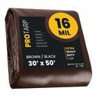 Keep important items protected with this ProTarp 30' x 50' black extra heavy-duty weatherproof 16 mil poly tarp with reinforced edges. This multi-purpose tarp serves as a protective cover for items such as building materials, vehicles, roofs, and outdoor furniture. It boasts metal grommets every 18", and it has reinforced edges, making it quick and easy to tie down. Thanks to the ultra-strong metal grommets, your tarp will remain securely in place even when it is windy. Plus, these grommets are rust-resistant for long-lasting service.