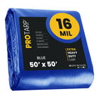 Ships free withKeep important items protected with this ProTarp 50' x 50' white extra heavy-duty weatherproof 16 mil poly tarp with reinforced edges. This multi-purpose tarp serves as a protective cover for items such as building materials, vehicles, roofs, and outdoor furniture. It boasts metal grommets every 18", and it has reinforced edges, making it quick and easy to tie down. Thanks to the ultra-strong metal grommets, your tarp will remain securely in place even when it is windy. Plus, these grommets are rust-resistant for long-lasting service.