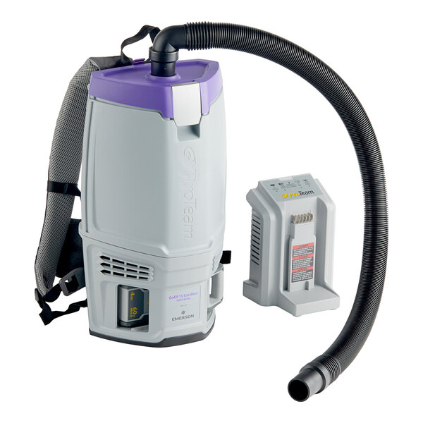 Clean your workspace with ease using this ProTeam GoFit® 6 backpack vacuum! When used on the high setting, its 310W motor delivers up to 70 CFM and 63" lift while operating quietly at just 67 dB. This 6 qt. backpack vacuum is ideal for those maneuvering larger spaces. It comes with a ProBlade hard surface and carpet floor kit, which includes a myriad of tool attachments, so you can clean every floor in your establishment in no time.