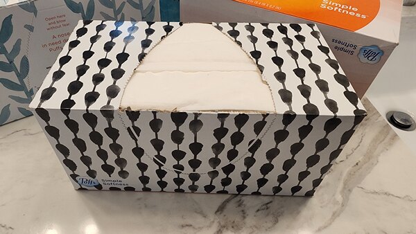 I bought this multi-pack of Puffs tissues to save me a trip to the store; it's ALWAYS good to have tissues around in the event of colds, allergies, or worse. I've always liked Puffs, and I appreciate that they offer a non-lotion tissue for those who cannot abide it. One of the boxes came rather crushed (as pictured), so I won't be using them in my guest restroom, but otherwise, they are great, quality product that is indispensable to me. The rectangular box size is great for nurseries, on top of commodes, or at your front desk.